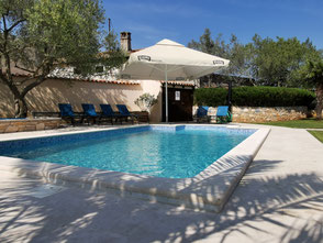 Hier gibt's viele Bilder über den großzügigen Aussenbereich mit Pool und Freisitz/Aussenküche der Villa ORADA.